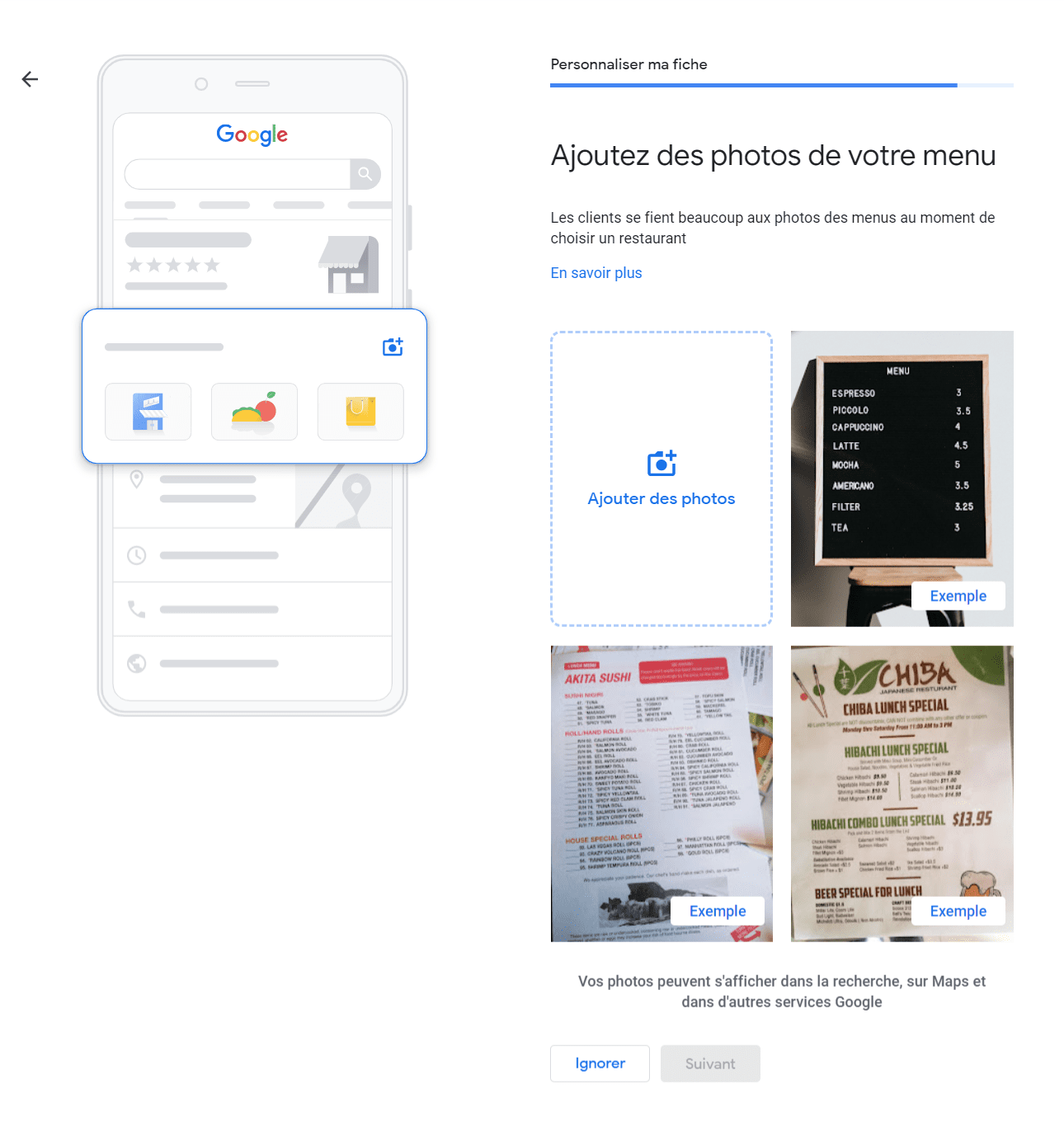 Enfin, ajoutez des photos pour que les visiteurs puissent repérer les lieux avant leur passage, et vérifier vos produits. L’internaute tient à gagner du temps en faisant ses recherches en ligne, alors offrez-lui les informations dont il a besoin. De plus, ce procédé vous permet de vous référencer sur Google Images.